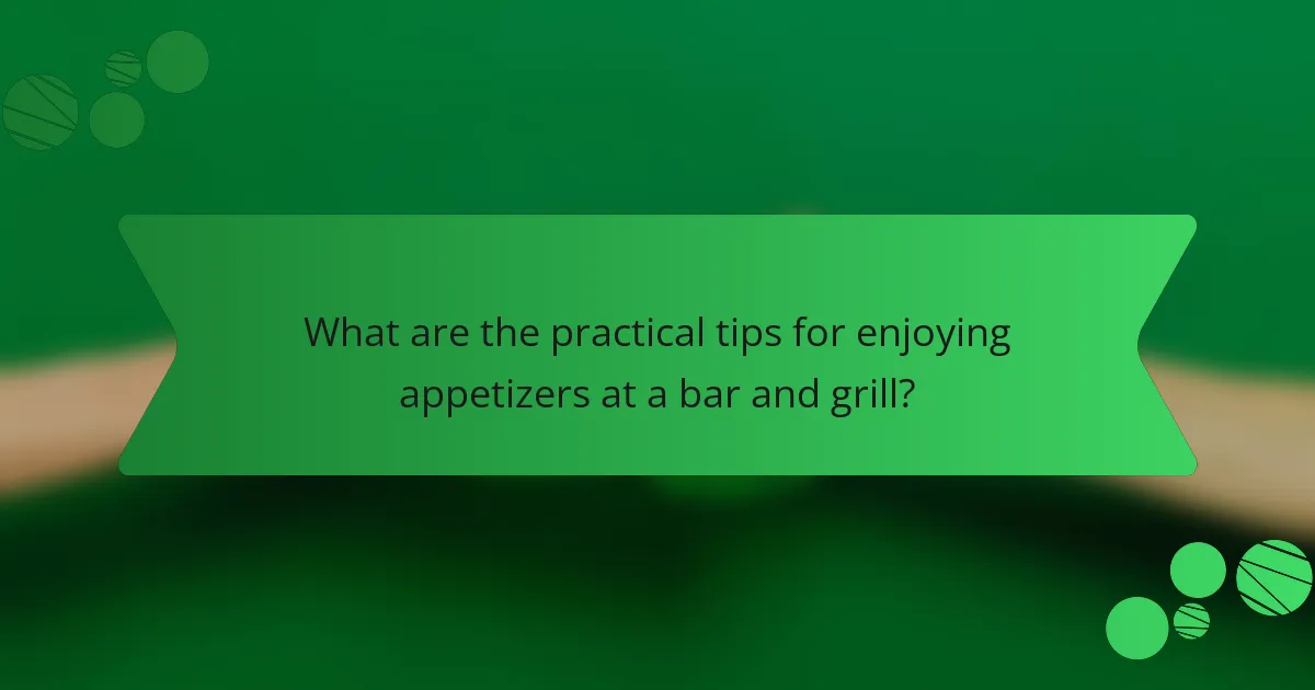What are the practical tips for enjoying appetizers at a bar and grill?