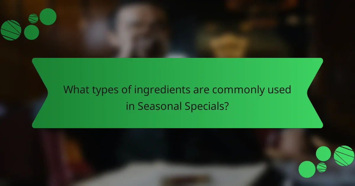 Seasonal Specials commonly use fresh, locally sourced ingredients. These ingredients vary by season. In spring, herbs like basil and vegetables such as asparagus are popular. Summer often features tomatoes, corn, and berries. Autumn brings pumpkins, apples, and root vegetables. Winter menus may include hearty greens, citrus fruits, and winter squash. Seasonal ingredients enhance flavor and support local agriculture. They also align with consumer preferences for freshness and sustainability.