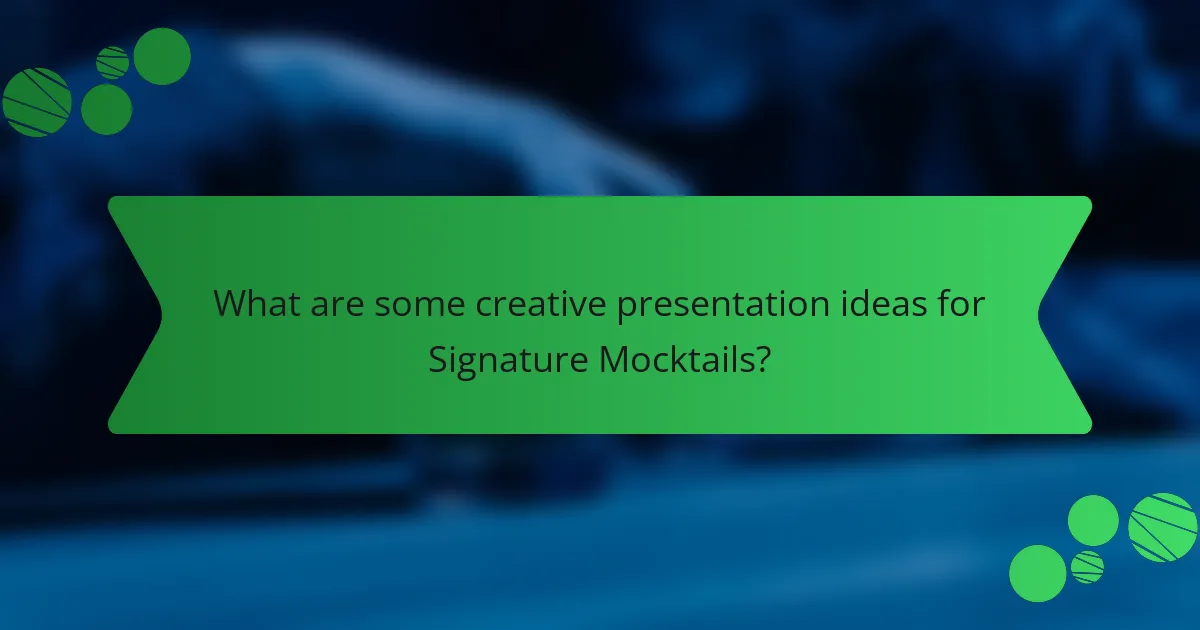 Signature mocktails are sophisticated non-alcoholic beverages designed to replicate the complexity of traditional cocktails, using high-quality ingredients such as fresh fruits, herbs, and spices. This article explores various aspects of signature mocktails, including popular ingredients like flavored syrups and sparkling waters, as well as iconic recipes such as Virgin Mojito, Shirley Temple, and Nojito. Additionally, it provides creative presentation ideas that enhance the visual appeal of these drinks, including unique glassware, garnishes, and themed ice shapes. The growing popularity of signature mocktails promotes inclusivity at social events and restaurants, offering a refined alternative for guests who prefer non-alcoholic options.