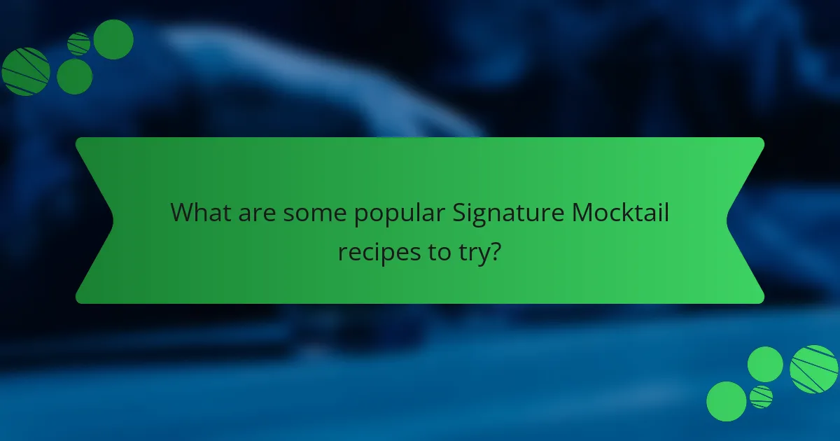 Popular Signature Mocktail recipes include Virgin Mojito, Shirley Temple, and Nojito. The Virgin Mojito combines mint leaves, lime juice, sugar, and soda water. It offers a refreshing taste perfect for hot days. Shirley Temple features ginger ale, grenadine, and a splash of orange juice. This mocktail is often garnished with a maraschino cherry. The Nojito is a non-alcoholic version of the classic Mojito, using fresh mint, lime, and club soda. Each recipe provides a unique flavor profile while being alcohol-free.