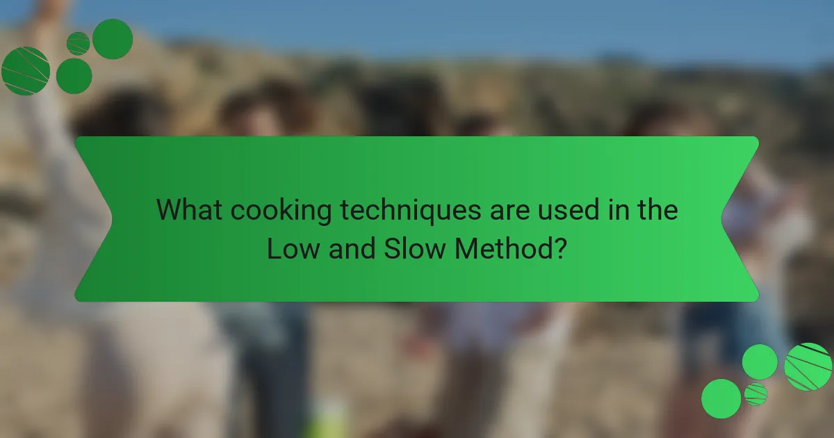 The Low and Slow Method primarily employs techniques such as braising, smoking, and slow roasting. Braising involves cooking meat slowly in a small amount of liquid. This technique tenderizes tougher cuts and enhances flavor. Smoking incorporates low heat and wood smoke, infusing the meat with rich flavors. Slow roasting uses low temperatures for extended periods, allowing even cooking and moisture retention. These techniques are effective for breaking down collagen in tougher meats, resulting in tender, flavorful dishes.